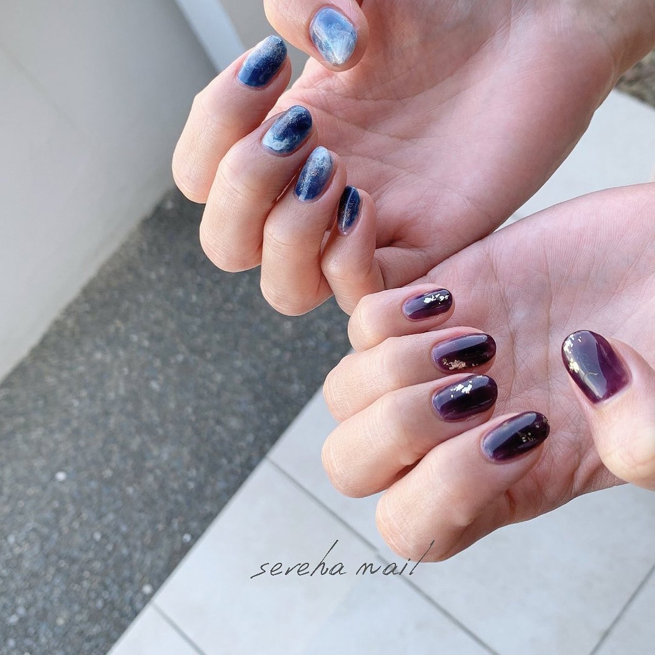 秋 冬 ニュアンス ブルー パープル Eriのネイルデザイン No ネイルブック