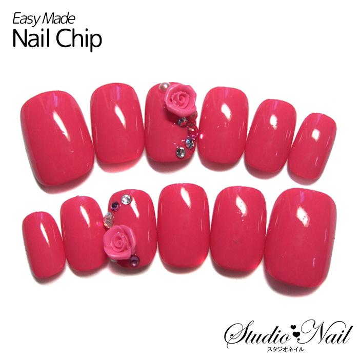 ネイルチップ 短い ちびつけ爪濃いピンクベース3dピンクバラ付きスワロ パール付き 12枚入り ピンク系 Ks 13 900 1 スタジオ ネイル 通販 Yahoo ショッピング